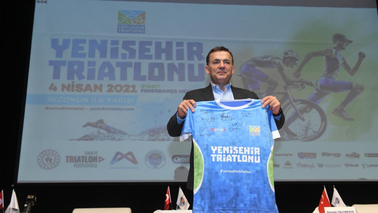 Mersin Yenişehir Belediyesi ile Türkiye Triatlon Federasyonu’nun düzenlediği Yenişehir Triatlonunun tanıtım toplantısı Yenişehir Atatürk Kültür Merkezinde yapıldı. Toplantıya Mersin Vali Yardımcısı Süleyman Deniz, Yenişehir Belediye Başkanı Abdullah Özyiğit, Büyükşehir Belediye Başkanvekili Gülcan Kış, CHP Mersin Milletvekili Alpay Antmen, Gençlik ve İl Spor Müdürü Ökkeş Demir, Triatlon Federasyon Başkanı Bayram Yalçınkaya ve Mersin Gazeteciler Cemiyeti Başkanı Kaya Tepe katıldı.