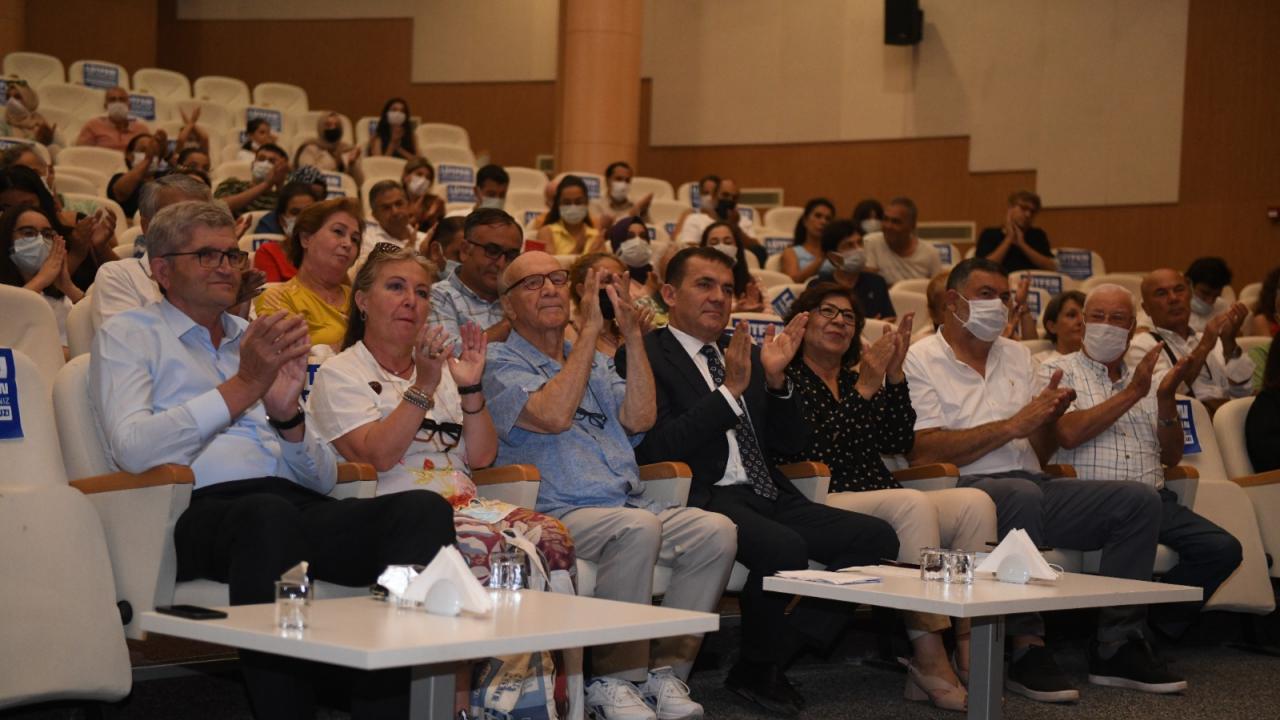 Başkan Özyiğit, Osman Şahin'in kendisi için imzaladığı, kadın mücadelesini anlatan Mor Cepken kitabından da bir bölüm okudu.