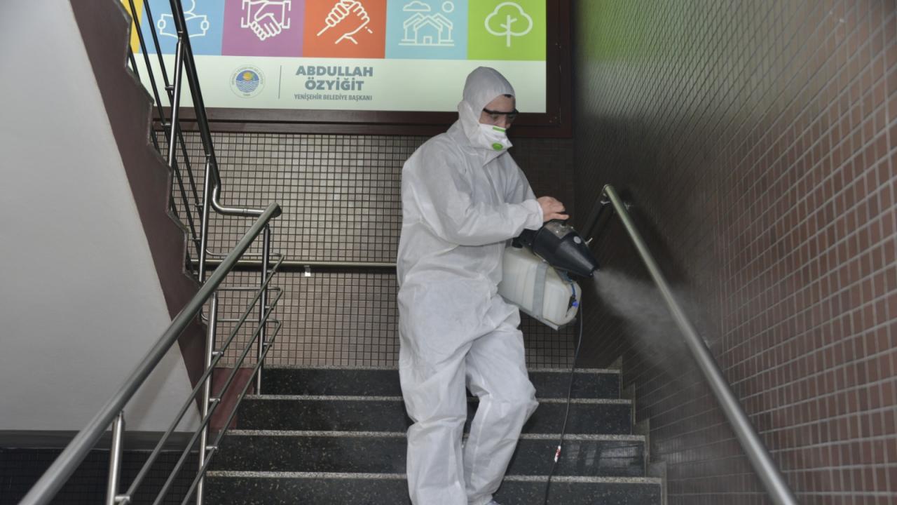 İnsan sağlığını ön planda tutan Yenişehir Belediyesi, Koronavirüs (Covıd-19) ve diğer salgın hastalıklara karşı belediye binaları ve diğer ortak kullanım alanlarını dezenfekte etti. Belediye Başkanı Abdullah Özyiğit, salgın hastalıklara karşı önlem aldıklarını söyledi.