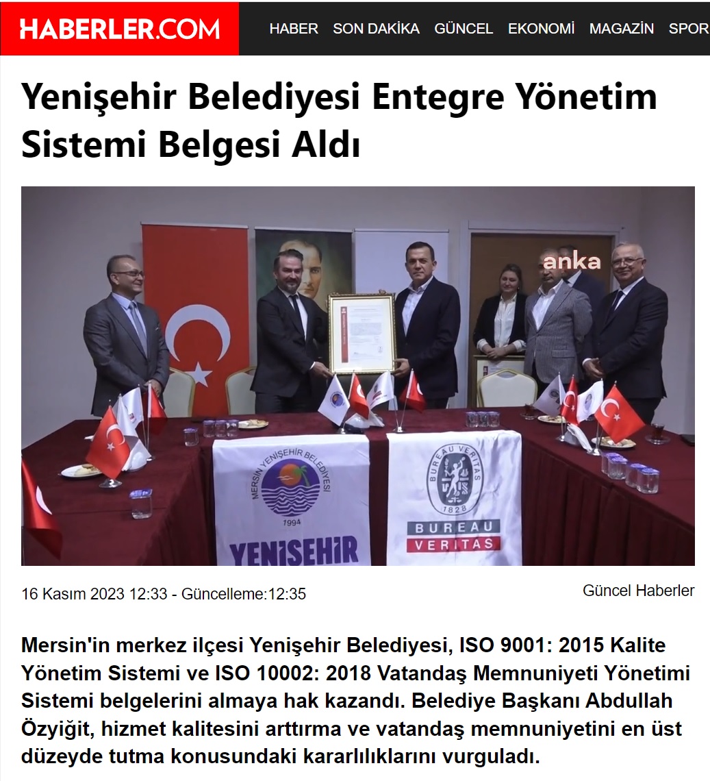 Yenişehir Belediyesinin hizmet kalitesi belgelendi Basın Linkhttps://www.haberler.com/guncel/yenisehir-belediyesi-entegre-yonetim-sistemi-be…